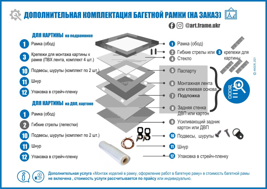 КОМПЛЕКТАЦИЯ БАГЕТНОЙ РАМКИ ДЛЯ КАРТИНЫ
