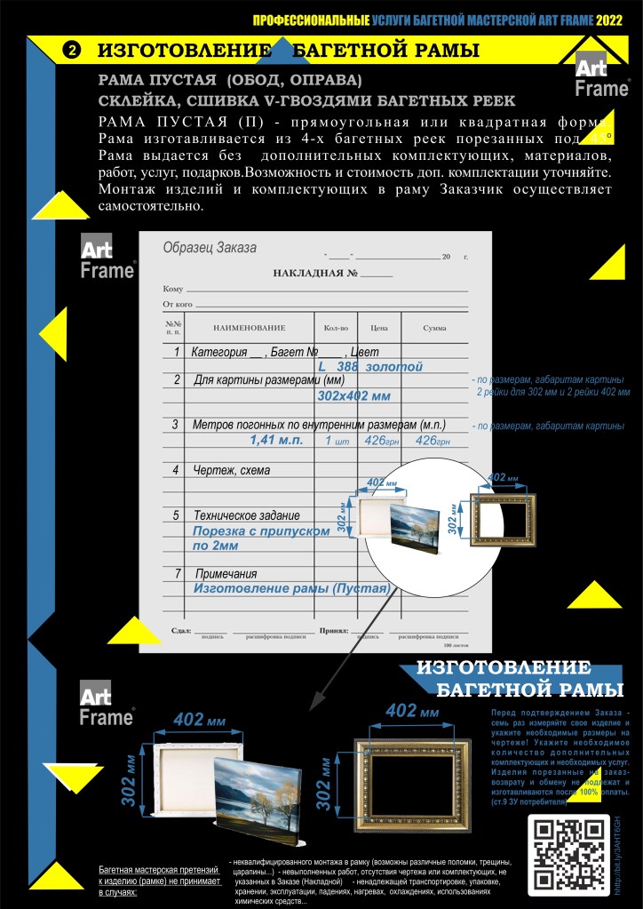 замеры). Рамка изготавливается строго по размерам указанным Заказчиком,
